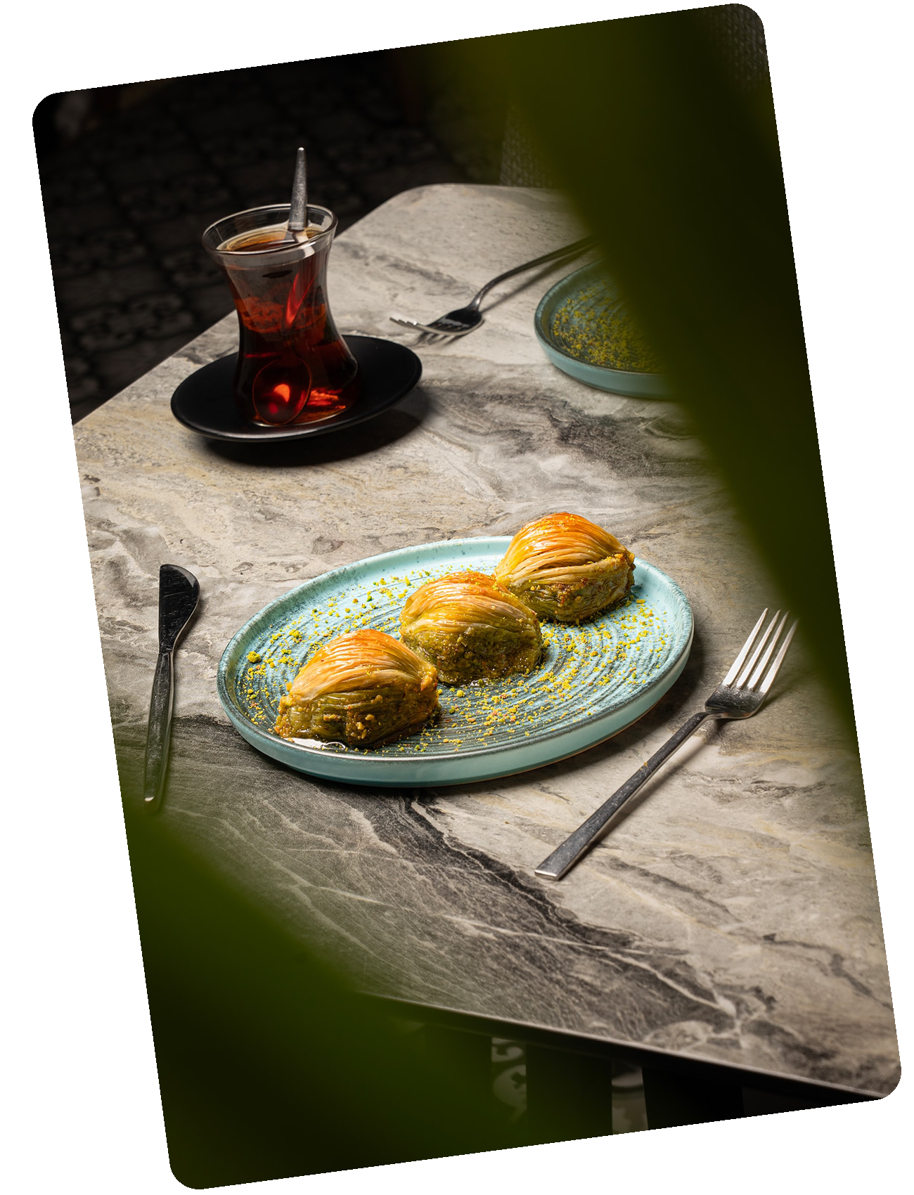 Klasik baklavalardan özel kadayıf çeşitlerine günün her anına eşlik edecek tatlılarımızla geniş bir menü sunuyoruz. Her bir ürünü, malzemesinden pişirme tekniğine kadar titizlikle hazırlıyoruz. Çünkü bizim için en önemli şey: her yerde aynı kaliteyi korumak.